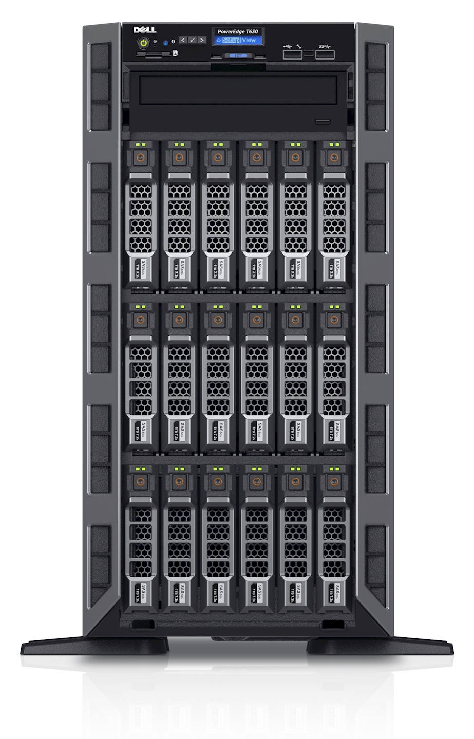 - Capacité étendue et fonctionnalités sans précédent : prenant en charge jusqu à 50 % de disques durs en plus que la précédente génération, le serveur PowerEdge T630 offre de nouvelles fonctionnalités aux petites et moyennes entreprises et aux bureaux distants utilisant un système de courrier électronique/messagerie, l imagerie médicale, la virtualisation des postes de travail et des serveurs, et le rendu graphique économique. Prenant en charge jusqu à 32 disques durs de 2,5" ou 18 disques durs de 3,5", le serveur T630 peut stocker davantage de boîtes aux lettres de plus grande taille et réduire considérablement votre coût par boîte aux lettres. Des configurations de stockage flexibles vous permettent de répondre aux exigences élevées en matière de charge de travail, tandis qu une importante capacité de disque dur permet une extension économique à l intérieur des serveurs.