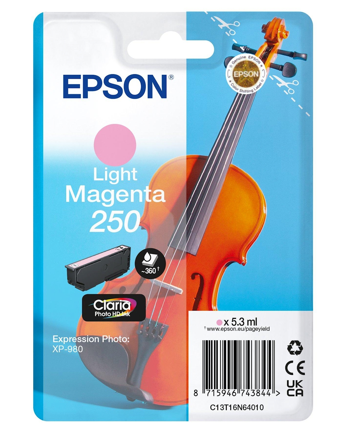 Epson 250 Violin Claria Photo HD cartouche d'encre 1 pièce(s) Original Rendement élevé (XL) Magenta clair (C13T16N64010)