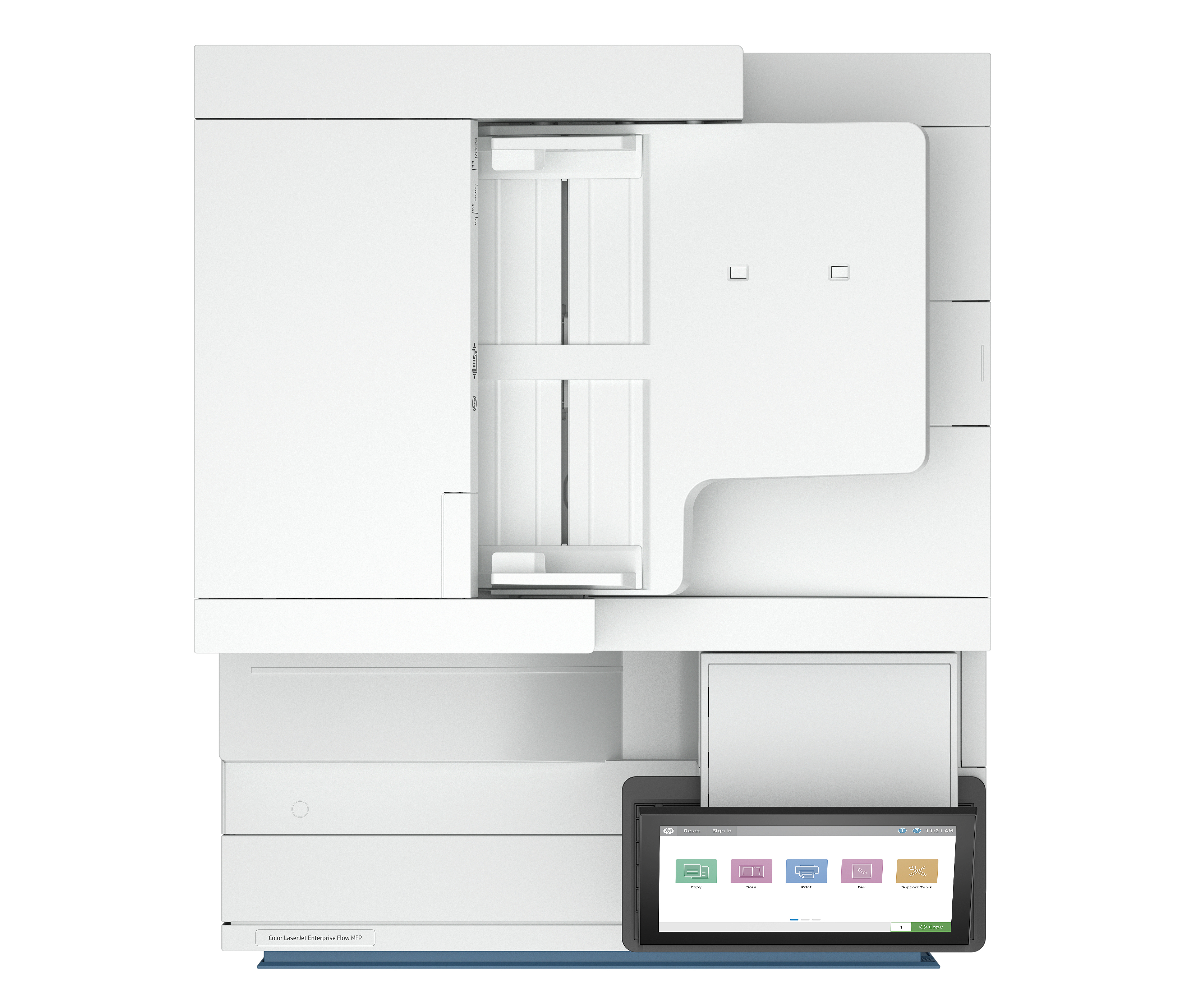 Tray 1: 98 x 139.7 to 320 x 457.2 mm; Tray 2: 98 x 139.7 to 297 x 241.5 mm; Tray 3: 140 x 182 to 320 x 457.2 mm; Tray 4: 140 x 182 to 320 x 457.2 mm; Tray 5: 140 x 182 to 320 x 457.2 mm |