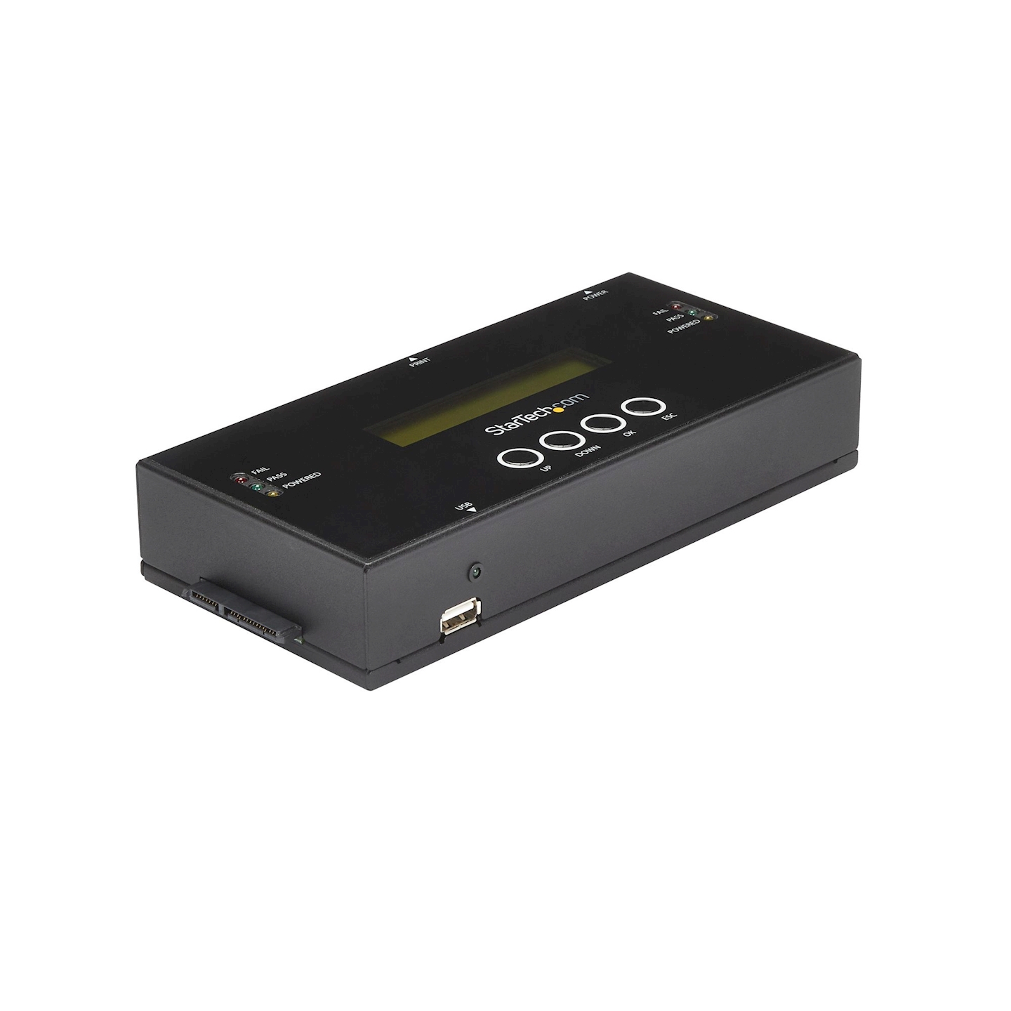 Le duplicateur et effaceur de disque offre aux professionnels de l'informatique une solution facile à utiliser dans un environnement de bureau ou avec un serveur. Il offre des boutons de navigation par menus pratiques et un écran LCD intégré qui identifie clairement le mode de duplication ou d'effacement et le statut de la tâche. Il est indépendant du système d'exploitation et aucun logiciel ni pilote n'est donc requis.