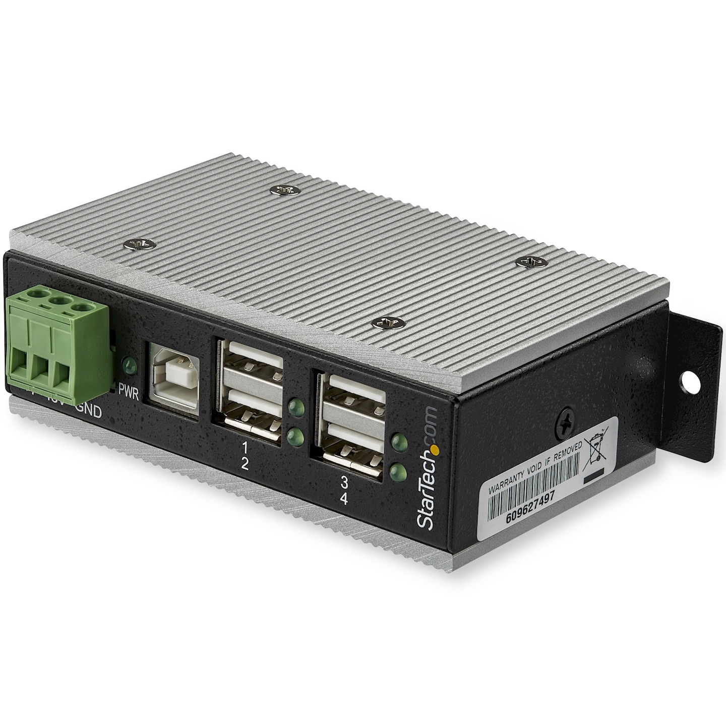Ce hub USB industriel garantit des performances fiables grâce à son boîtier en métal robuste. La vaste plage d'entrée en courant continu de son bornier (7 V CC à 48 V CC) vous permet d'alimenter le hub en fonction de vos propres capacités.